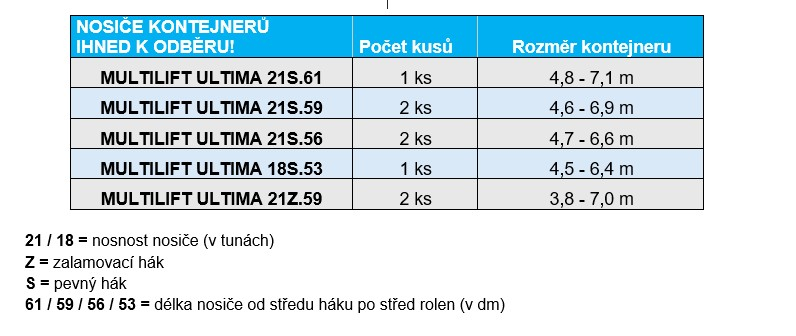 Skladové nosiče kontejnerů MULTILIFT - ihned k odběru!