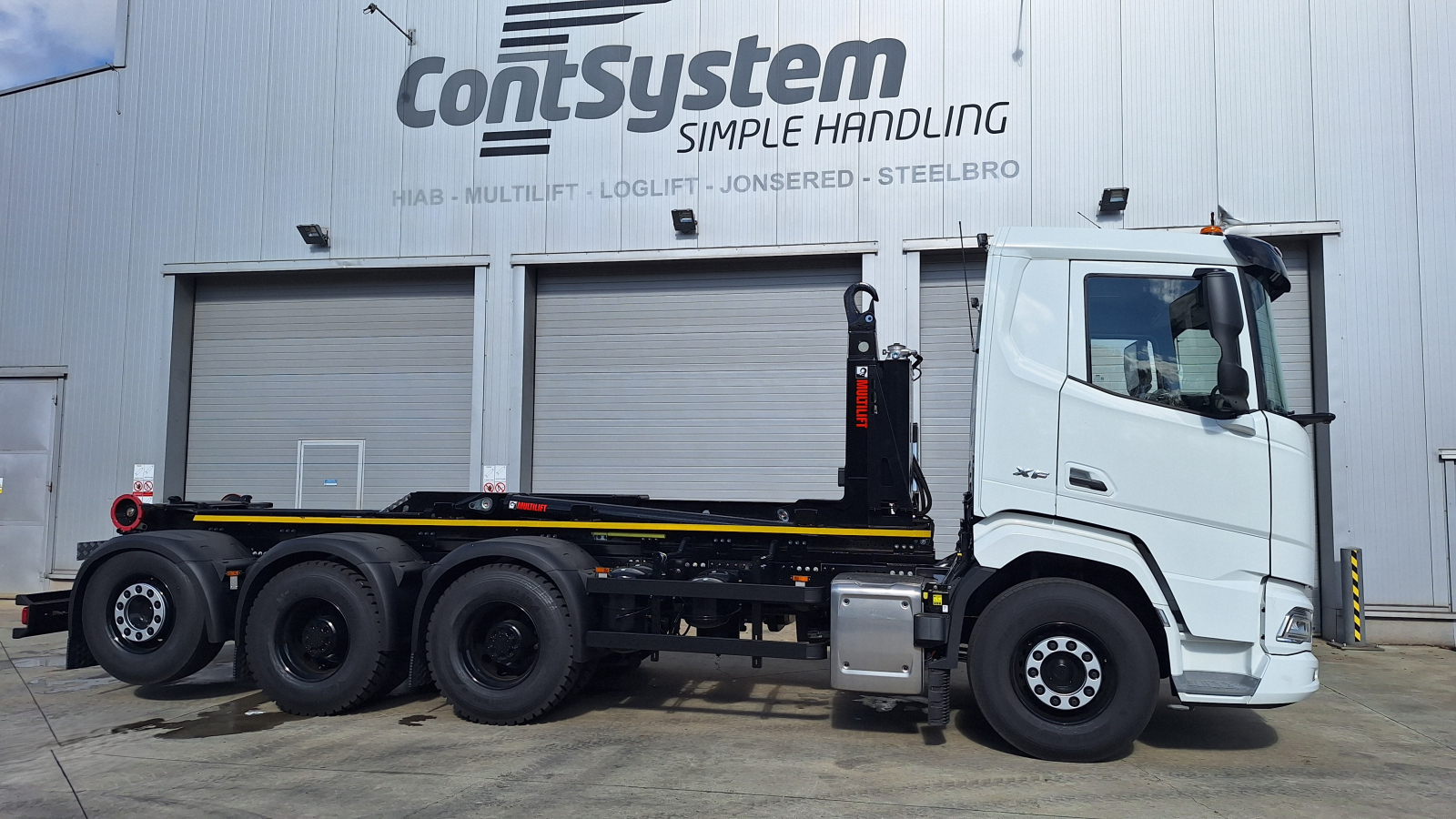 Představujeme nový projekt montáže a dodání hákového nosiče kontejnerů MULTILIFT Ultima 26Z.59 s nosností 26 tun, namontovaný na podvozku DAF. Tento moderní systém je určen pro manipulaci s kontejnery o délce 3,8 – 7,0 metru a přináší špičkové technologie pro efektivní a bezpečné nakládání i vykládání. Nosič je ovládán pohodlně z kabiny pomocí joysticku, nechybí ani dálkové ovládání a nouzové venkovní ovládání.