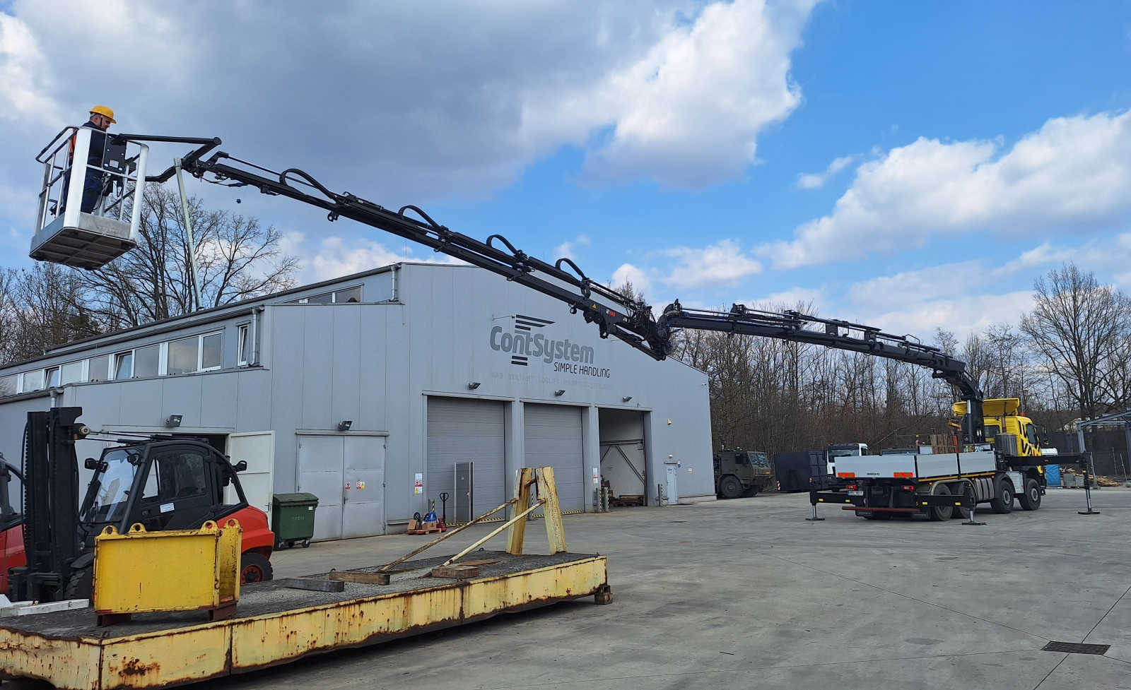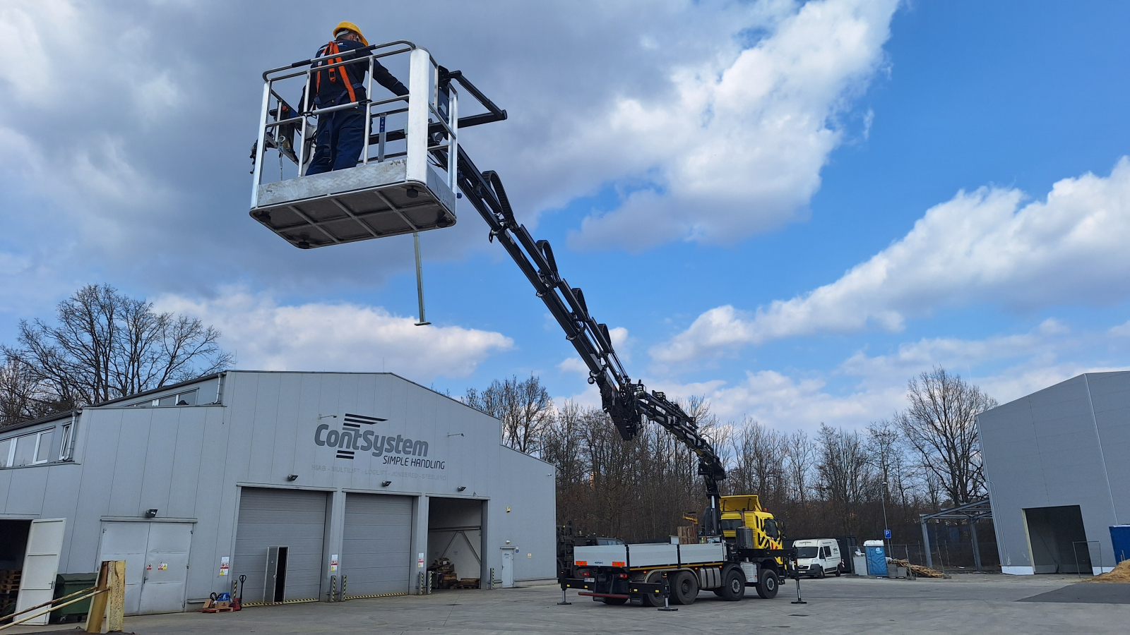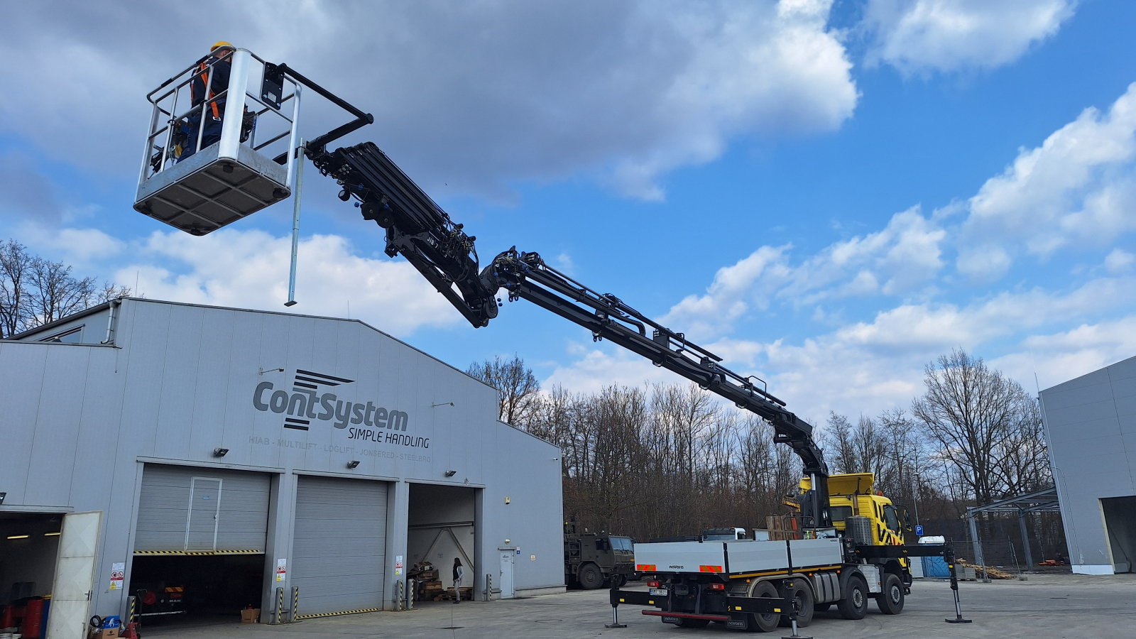 V této konfiguraci s lanovým navijákem, hydraulickým výložníkem JIB, pracovním košem s gravitační nivelací, hydraulickým drapákem na sypké hmoty a rotátorem, nemusí jeho majitel řešit další techniku!